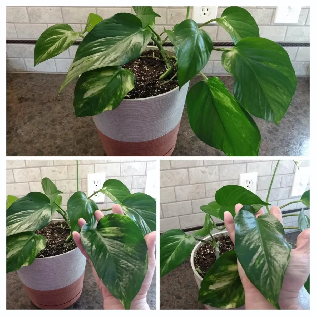 I've been growing pothos since as long as I can remember. Never! I repeat never, have I had leaves grow this big. So, what did I do different? This plant since it was a cutting gets watered with Biostimulant made from Moringa. Half strength: 1oz bio stimulate to 1gal H2O